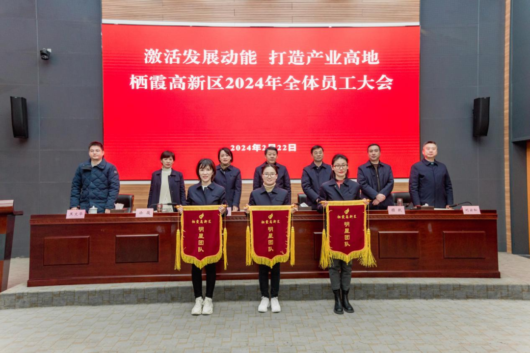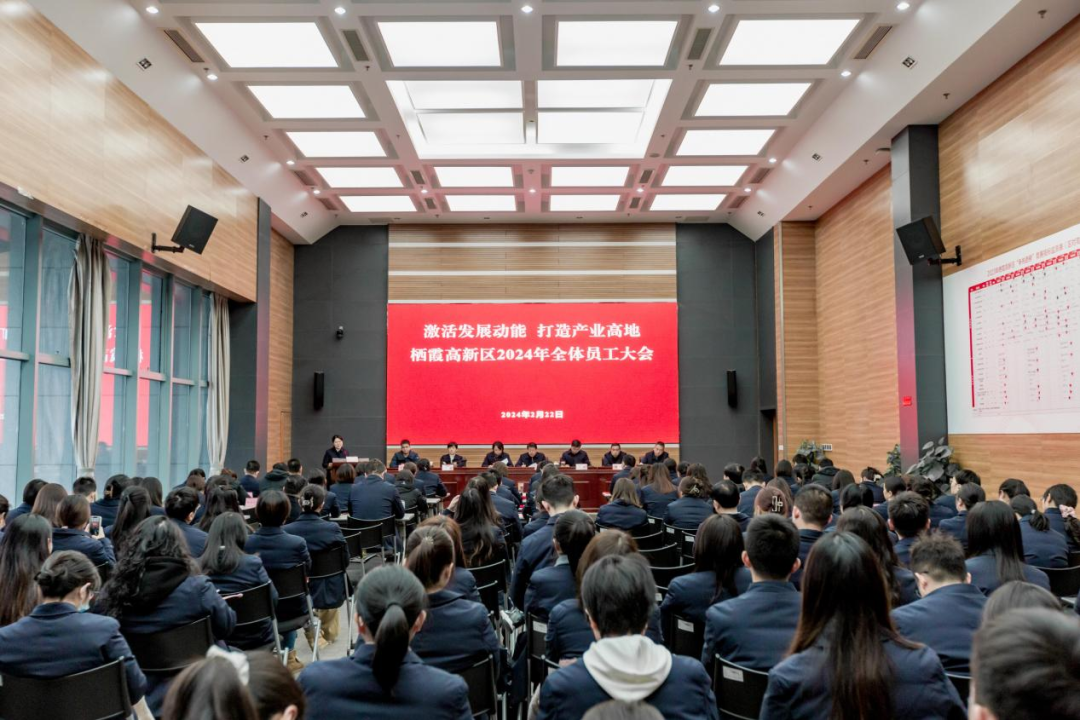 吹響號(hào)角勇爭(zhēng)先,奮力實(shí)干開新局。2月22日,棲霞高新區(qū)召開2024年全體員工大會(huì),回顧2023年工作成效,部署全年工作,總結(jié)經(jīng)驗(yàn),表揚(yáng)先進(jìn),激勵(lì)干部職工對(duì)標(biāo)競(jìng)進(jìn)、比學(xué)趕超。區(qū)委常委、區(qū)政府常務(wù)副區(qū)長,棲霞高新區(qū)黨工委書記郭昌標(biāo),高新區(qū)部長以上領(lǐng)導(dǎo)、各部門全體員工、子公司班子成員參加會(huì)議。黨工委常務(wù)副書記楊靜主持會(huì)議。