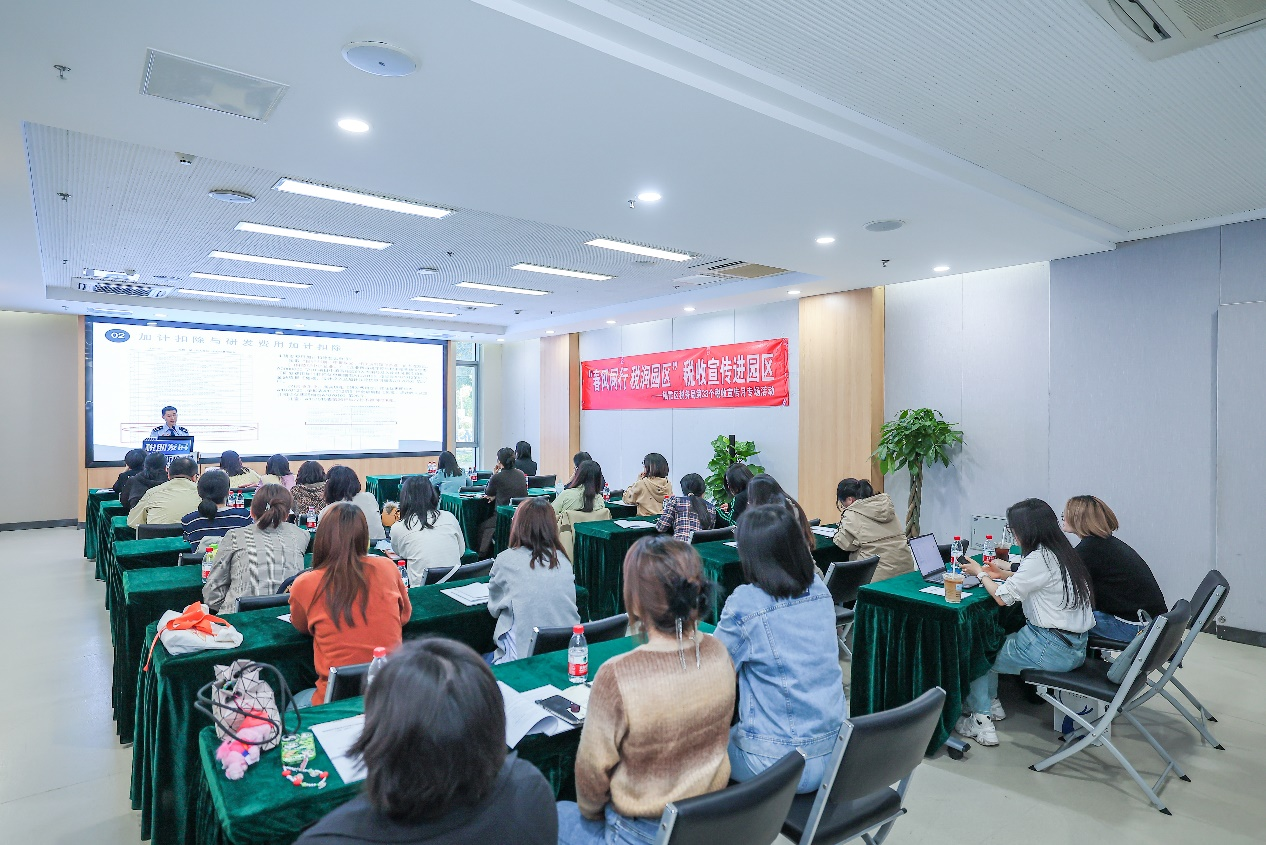 活動(dòng)上半場(chǎng),圍繞“春風(fēng)同行 稅潤(rùn)園區(qū)”主題,棲霞高新區(qū)邀請(qǐng)棲霞區(qū)稅務(wù)局業(yè)務(wù)科室負(fù)責(zé)人開展2023企業(yè)所得稅匯算清繳培訓(xùn),針對(duì)企業(yè)關(guān)注的研發(fā)費(fèi)用加計(jì)扣除政策深入宣講。