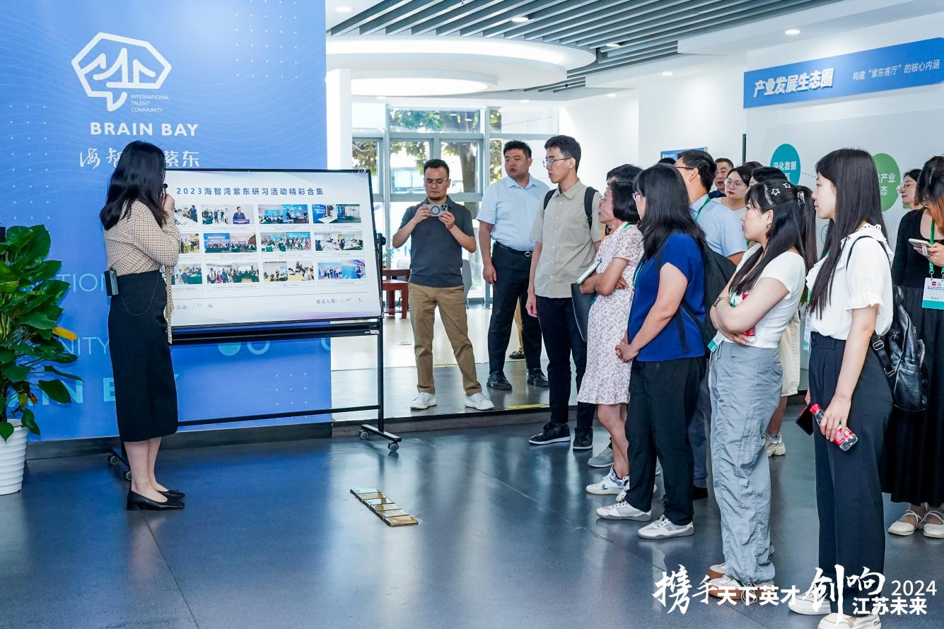 當(dāng)天下午,人社部專家和留學(xué)人員服務(wù)中心主任沈水生、江蘇省專家和留學(xué)人員服務(wù)中心主任汪吉庶、南京市人社局局長、黨組書記孫愛軍、棲霞區(qū)人民政府副區(qū)長孫東方陪同受邀的海外博士共同參觀考察棲霞區(qū)南京紫東國際創(chuàng)意園、南京生命科技創(chuàng)新園、圖靈人工智能研究院(南京)有限公司、南京漢欣醫(yī)藥科技有限公司等地,實地了解棲霞高新區(qū)新質(zhì)生產(chǎn)力產(chǎn)業(yè)蓬勃發(fā)展的現(xiàn)狀和開放包容的創(chuàng)新創(chuàng)業(yè)環(huán)境。受邀的一名博士表示,“參加完上午的活動,對我們南京棲霞的人才政策和產(chǎn)業(yè)情況有了更深入的了解,正好漢欣醫(yī)藥的新產(chǎn)品研發(fā)思路和我的課題背景不謀而合,希望我能留在棲霞發(fā)展,期待未來能以己之長為棲霞發(fā)展貢獻力量”。