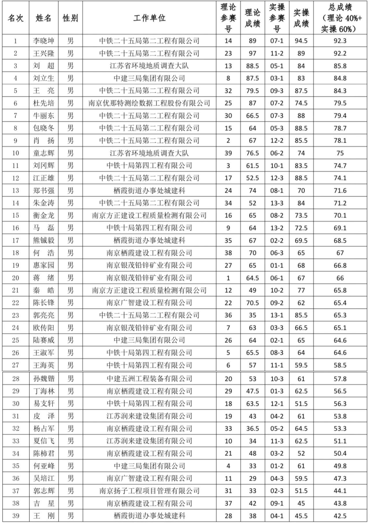 2025年度“棲工杯”棲霞區(qū)職工職業(yè)技能大賽工程測(cè)量員技能競(jìng)賽成績(jī)公示